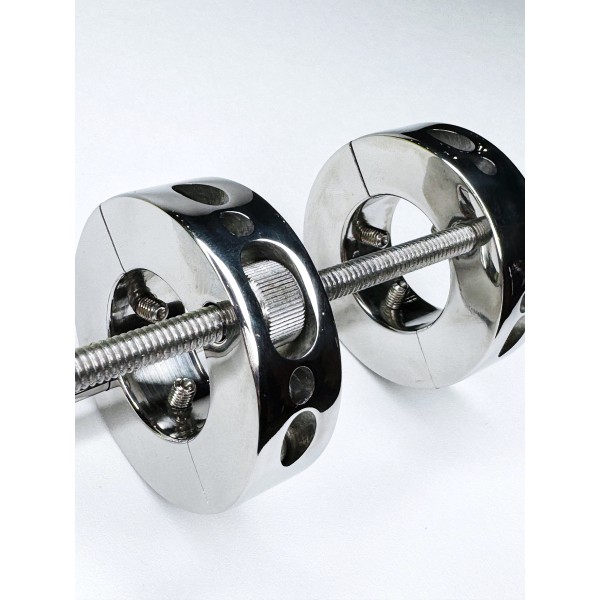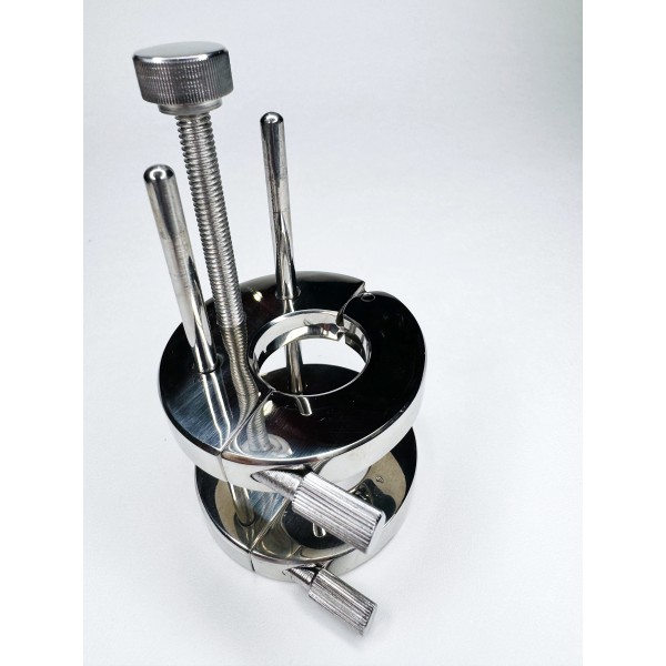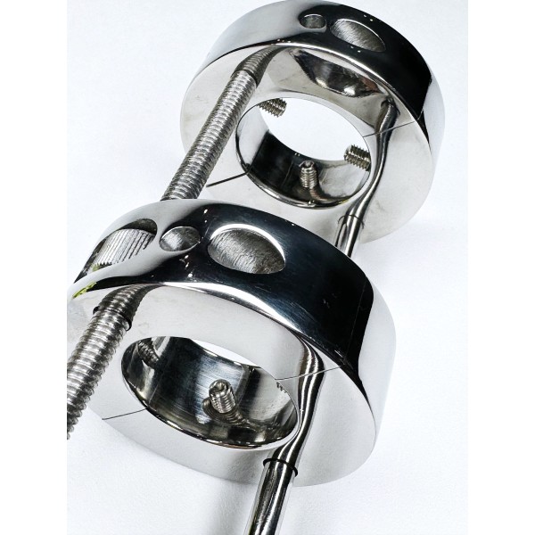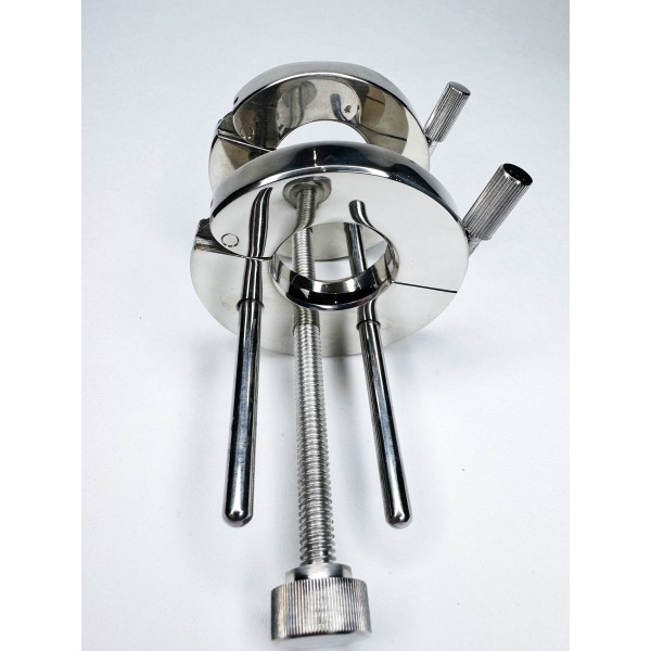 Общая высота: 13 см. Внешний диаметр разъёмных колец: 7 см. Внутренний диаметр: 3 см. Вес: 680 г. Материал: хирургическая сталь. ...